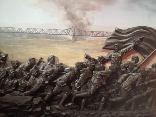 最后,我院领导又带领学生参观战役纪念馆。墙壁上回忆了当时华东野战军与国民党在山东地区的战役画面。通过图片和文字的展示,向同学们诉说当时的战况。战士们吹响冲锋号,奋发向前的迎敌动作通过浮雕展现的栩栩如生。战火纷飞,烟雾缭绕,曾经英烈们用的刀枪、紧急输送的公文包、观察敌情的望远镜等都展示在学生们面前,让学生们切身感受战役,体会革命先烈牺牲自己、捍卫国家的伟大情怀。