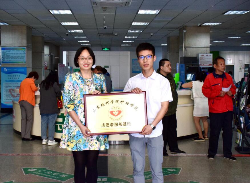 2019年5月13日,我校护理学院于济南市第三人民医院举行了山东现代学院护理学院志愿者服务基地挂牌仪式。济南市第三人民医院院团委书记王竹君与我院志愿者服务负责人卢甲豪进行了签约挂牌仪式,今后我院学生将会定期到济南市第三人民医院进行志愿服务。