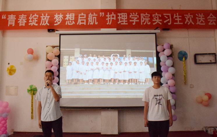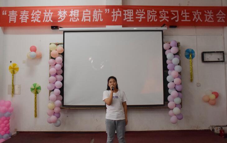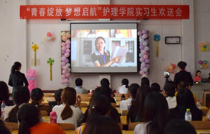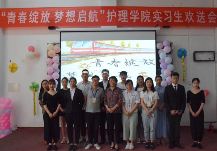 为欢送护理学院实习生,山东现代学院护理学院于2019年6月13日在合堂108举办了“青春绽放,梦想启航”2019年实习生欢送会,护理学院院长李秀芳、办公室主任王筱琳、行政秘书闫迎新以及辅导员毕一鸣参加了本次活动。