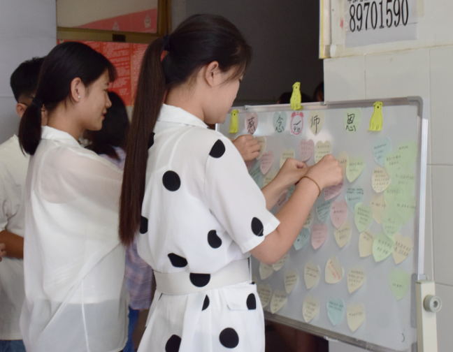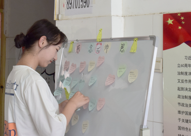有的同学在便利贴中写道:“感谢我生命中遇到的所有老师,是你们让我拥有知识,改变命运。老师,祝您教师节快乐。”