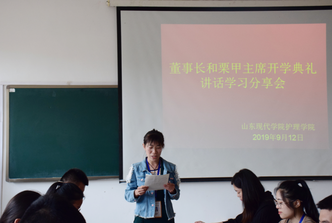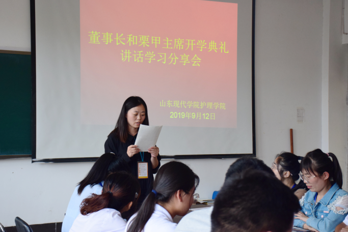 为贯彻落实山东现代学院“知行合一,立德树人”的育人理念,2019年9月12日,山东现代学院护理学院全体辅导员在一号教学楼213办公室就董事长在开学典礼上的讲话作出感悟分享。