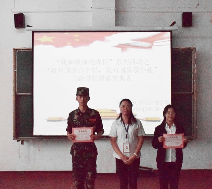 为增强现代学子的爱国热情,抒发爱国之志,值此中华人民共和国成立70周年之际,由共青团山东现代学院委员会主办,护理学院承办的“我和祖国共成长”系列活动之“我和国旗合个影,我向国旗敬个礼”主题摄影展于2019年9月20日至26日开展。