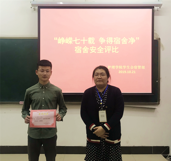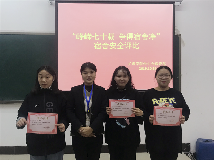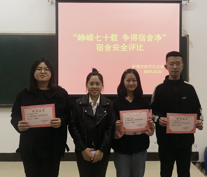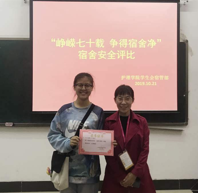 最后,在评委们的几番讨论与仔细统计后,选出了本次宿舍评比中最为出彩的优秀宿舍,并由护理学院的辅导员老师为获奖宿舍颁奖。