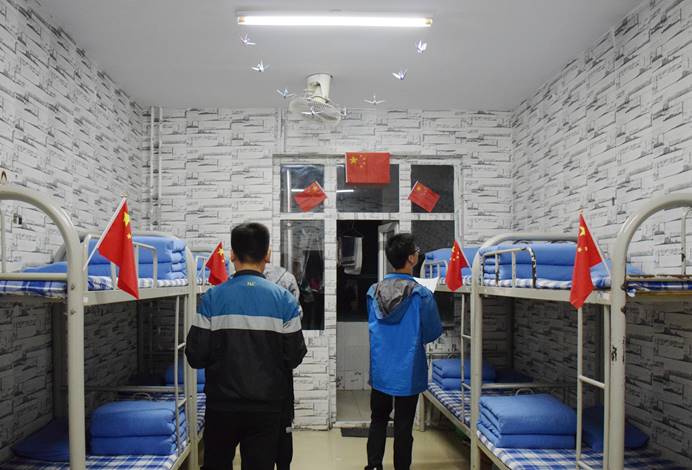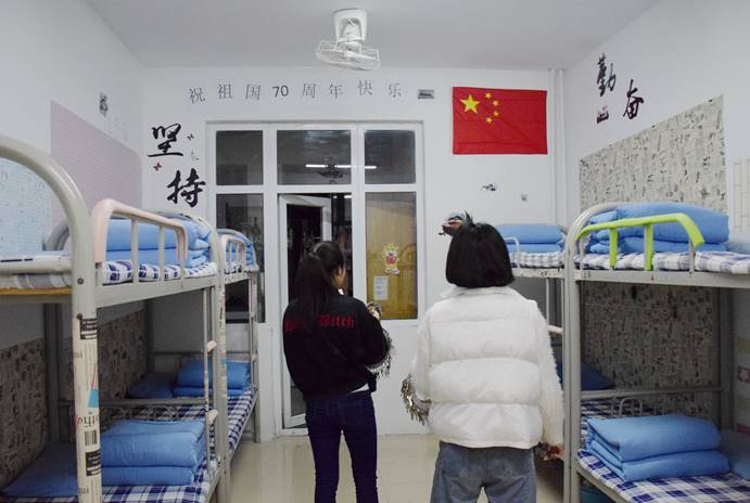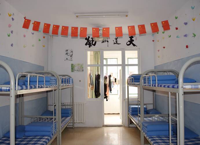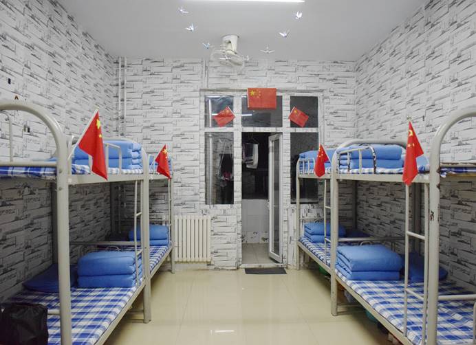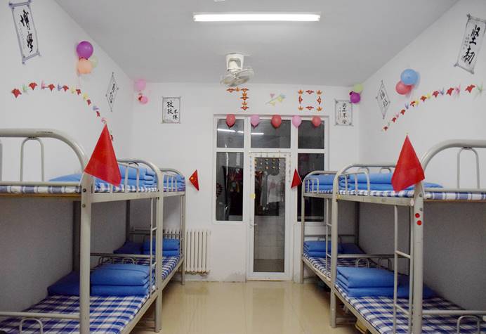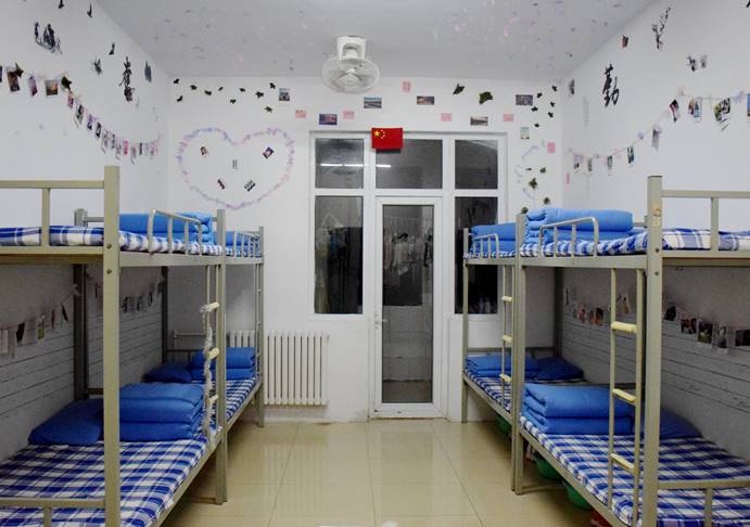 之后,评委们到男生宿舍13号楼进行评选,与女生宿舍不同,男生宿舍则更显简单,处处透露着男孩子的干练利索。