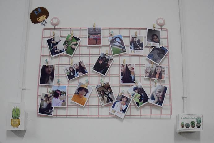 充满活力的照片墙、振奋人心的格言、颜色温暖明亮的壁纸、干净整齐的桌椅,每个地方都透露着女孩子们对这个小家的呵护。