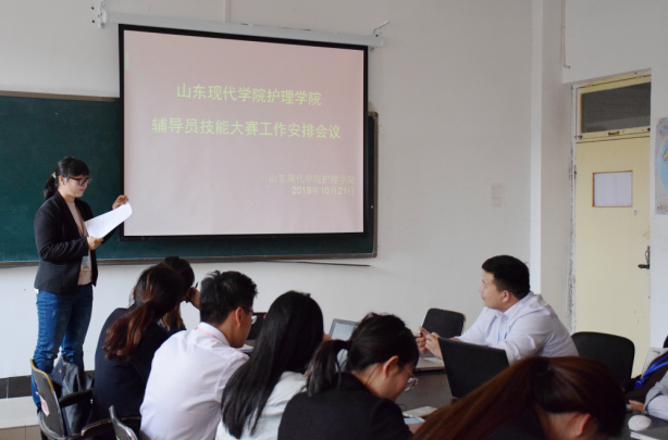 百年大计,教育为本,教师是教学过程中的重要一环,因此教师队伍的建设至关重要。为进一步加强山东现代学院辅导员队伍建设,提高广大辅导员的职业技能和专业素养,推动和引领我校辅导员队伍职业化、专业化发展,山东现代学院护理学院于2019年10月21日在知敬楼213开展了《山东现代学院2019-2020学年辅导员职业技能大赛实施方案》学习会议,本次会议由护理学院办公室主任王筱琳主持。