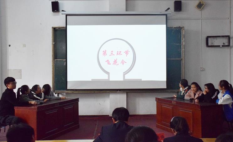 “飞花令”环节难度升级,每支队伍根据随机抽出的字轮流说出含有此关键字的诗句,这一环节即使难度加大,参赛选手们也迎难而上,对答如流。比赛现场气氛活跃,选手们分秒必争,比分不相上下。