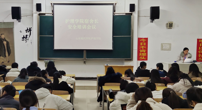 为了提高宿舍长的宿舍安全防范意识,确保安全工作落到实处,切实加强学生公寓管理工作,山东现代学院护理学院于2019年11月24日在合堂103召开宿舍长安全培训会议。本次会议由闫迎新老师主持,护理学院全体宿舍长参加会议。