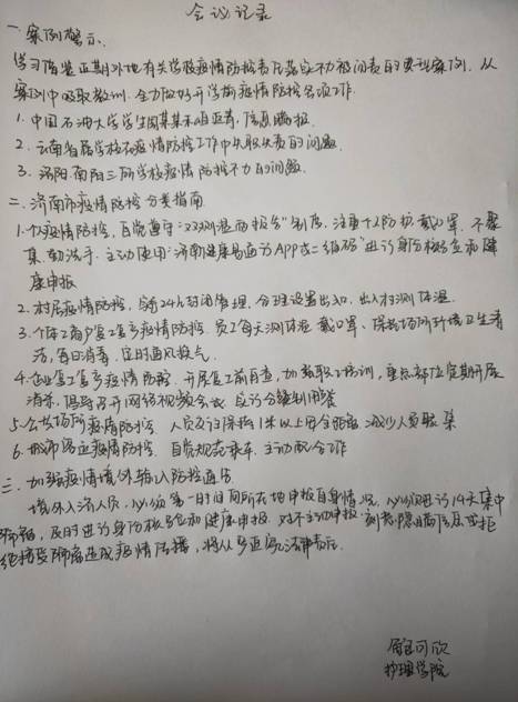 会议结束后,各位党员纷纷进行心得体会总结,对本次会议内容进行系统化整理。他们表示将做到防疫有责、尽责, 不忘初心,牢记使命,为坚决打赢这场防疫人民战、全局战,攻坚战,做出党员应做的贡献!