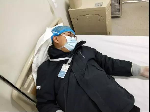 张弛是铁岭队伍里的唯一男护士,主动承担了重体力劳动,成为劳动主力。用小板车运床架、小柜,装的总是高高的;上下坡路,手磨破了,腿磕肿了,脚划出血了,他顾不上累累伤痕;衣服湿透了,被身体蒸干,再湿透,再蒸干,张弛从不叫苦。中午二十分钟休息时间,他歪歪斜斜躺着也睡着了。每天工作完毕回到住所都已经凌晨时分。这样高强度的劳动张弛持续了 4 天,每天微信运动显示步行数都要超过二万。