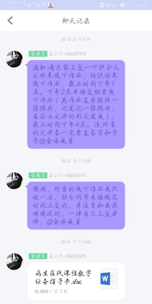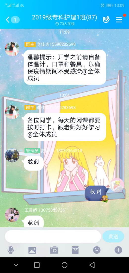 疫情阻挡了学生返校的脚步,却阻碍不了同学们在一起的心。网课听了吗?作业写了吗?今天签到了吗?线上授课的这段时间里,班委肩负起了监督同学学习的重任。交作业、签到、回答问题、身体状况,班委事事关心,时时叮嘱,关注着每一位同学的学习状态。等待疫情结束,同学回想起来心里也一定是满满的被关怀的幸福感。