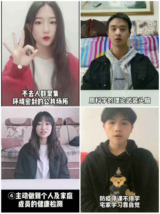 除此之外,辅导员们每天关注疫情最新动态,了解最新防疫知识,通过班级群等线上通知方式告知学生关注疫情状况。部分护理学子特将辅导员的嘱咐与通知进行收集后录制了抗疫知识视频,来使同学更加全面的了解抗疫知识,更好的保护好自己和家人的健康。