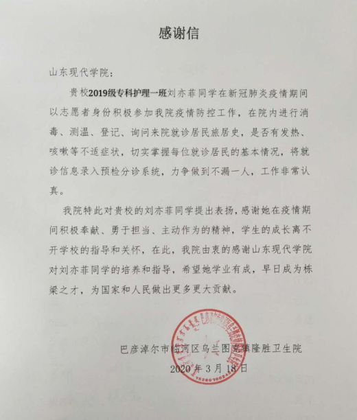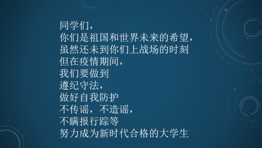 上下同欲者胜,风雨同舟者兴。我们坚信,有以习近平总书记为核心的党中央的坚强领导,有人民政府的科学部署,有社会各界以及全国人民的共同努力,我们一定能打赢这场疫情防控阻击战!2020年注定是难忘的一年,希望同学们在经历这场抗疫战之后,勇于担负责任,争做上善好学子,争做新时代追梦人!