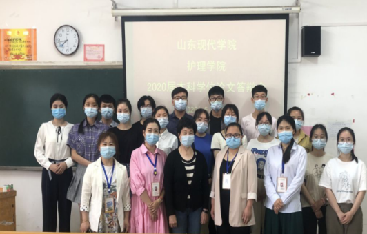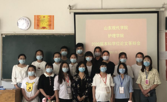 毕业设计(论文)是教学工作的重要环节,是培养和提高学生分析问题和解决问题能力的重要手段,是实现教学、科研和社会实践相结合的重要途径。为考核护理学子的真才实学,汇报其学习成果,向社会提供合格的护理工作者,山东现代学院护理学院于2020年5月26日在知敬楼103教室开展毕业生论文答辩会活动。本次答辩会由教务主任刘丽丽主持,护理学院教学院长李秀芳、学管就业副院长刘锦绣以及各答辩评委参加。聘请的答辩专家有山东大学王承芳老师、济南市中心医院姜新军老师、章丘区人民医院栗海清、王磊老师,济南护理职业学院宛纪宝老师。首先刘丽丽主任介绍了本次答辩的基本情况、答辩流程和要求。本次答辩共分为5个答辩小组,每个答辩小组三位评委、一位答辩秘书,答辩时间为5月26日、27日两天时间。