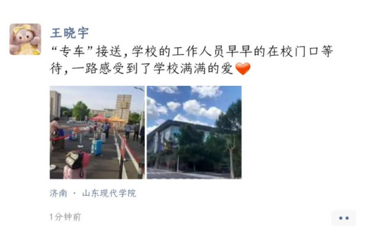 "下了大巴车以后,看到了来接我们回学校的老师,真的太惊喜了!" 是的,为了迎接学生的安全返校,学校的老师们到济南站、济南东站、济南西站、大明湖站、济南长途汽车站、遥墙机场做好接站服务,"点对点"接送同学们直达学校,给了同学们十足的归属感与安全感。