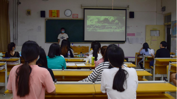 “为有牺牲多壮志,敢叫日月换新天。”视频中展现的每一位为国家富强、人民独立而奋斗英雄都是值得敬佩的存在。教室里一片安静,只能听见视频播放的声音,小小的屏幕上闪现过的每一个历史片段都值得人们铭记。同学们全神贯注的观看视频,认真思索,考虑自己未来的努力奋斗方向,同时在心里暗自决定一定像先贤学习,为中华民族的崛起而奋斗不止。