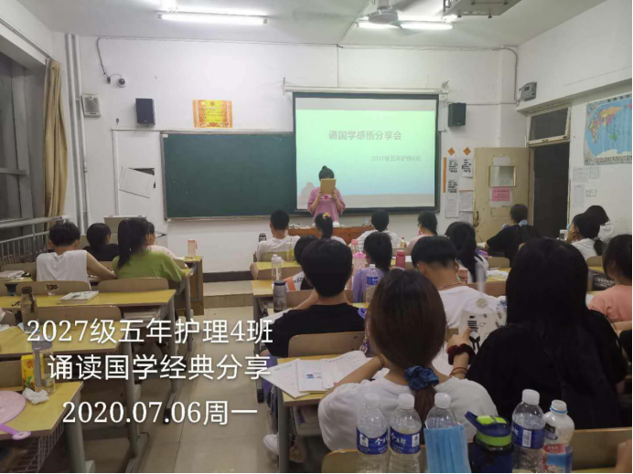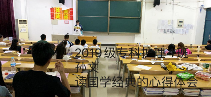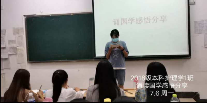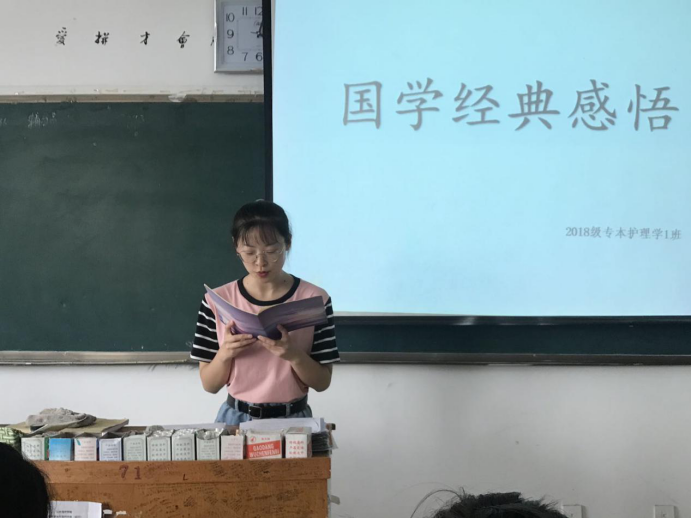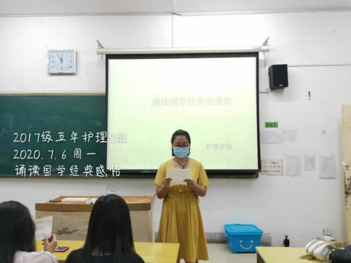 “经典”是一个民族博大智慧和美好情感的结晶。2017级五年护理4班的李君同学分享到,国学经典教给现代学子的是如何在生活中获取心灵快乐,找到个人坐标。“读书法,有三到,心眼口,信皆要,方读此,勿慕彼,此未终,彼勿起”,希望同学们在做事过程中做到全神贯注,精益求精,去迎接更加美好的自己。