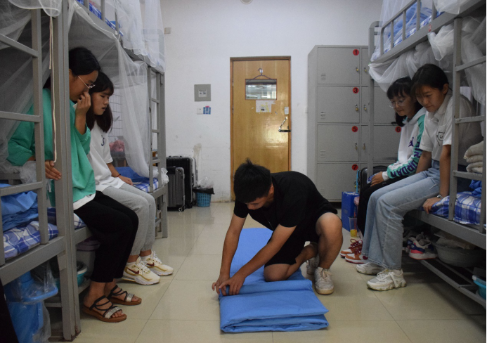 刚刚来到分配的宿舍,一切都是最开始的模样。铺床,叠被,扫地,打扫卫生……在辅导员的指导下,舍友和家长的齐心协力,把原本空荡荡的宿舍焕然一新,同时这也是同学们作为一名护理学子严格要求自己的第一步。