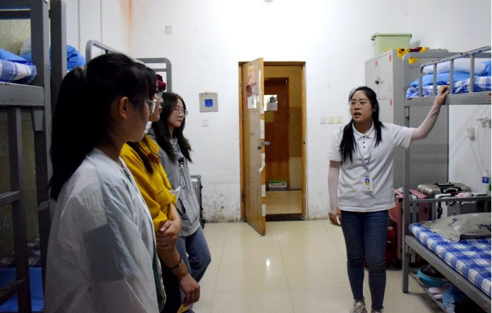 沿着长长的道路,终于看见了宿舍楼。学长学姐和公寓科的阿姨一起帮同学们把行李带到宿舍,欢迎他们从此成为护理大家庭的一员,以后大家同是“护”生。