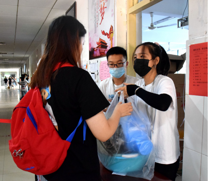 在进行完证件审核、信息录入等一系列步骤之后,新同学在学长的带领下有序领取生活用品,他们在护理学院的生活就此开启。