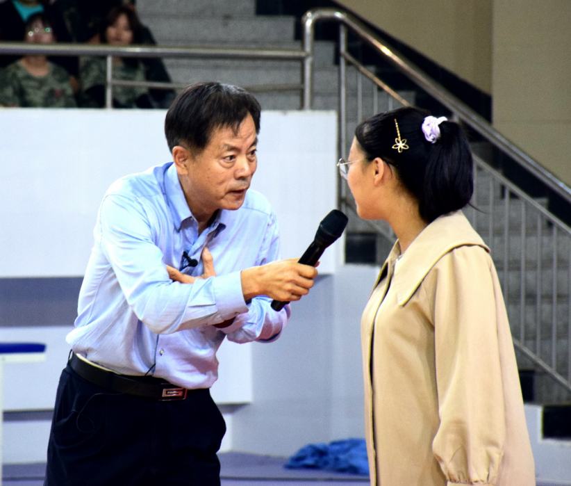 随后,吕老师现场抽取一名女同学,吕老师通过问答的方式,使同学们明白了生命的宝贵,懂得了生命是无价的事业。生命是为自己而活,是任何事物都无法取代的美好,吕老师的演讲获得了现场雷鸣般的掌声。