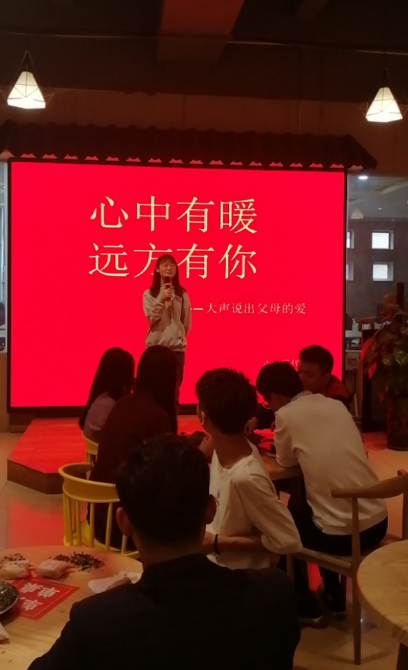 现场气氛热烈,同学们讲述者自己的大学规划和对远方家人的思念。“尽管心里想念,但是还要坚持自己的选择。露从今夜白,月是故乡明。我在异地思念家人,千里之外的他们也在挂念着我,我不是一个善于表达的人,但是还是想跟远方的爸爸妈妈说,爸妈,中秋快乐,我很想你们。”不管家在一小时车程的身边还是千里之外的地方,都是我们向往的地方。