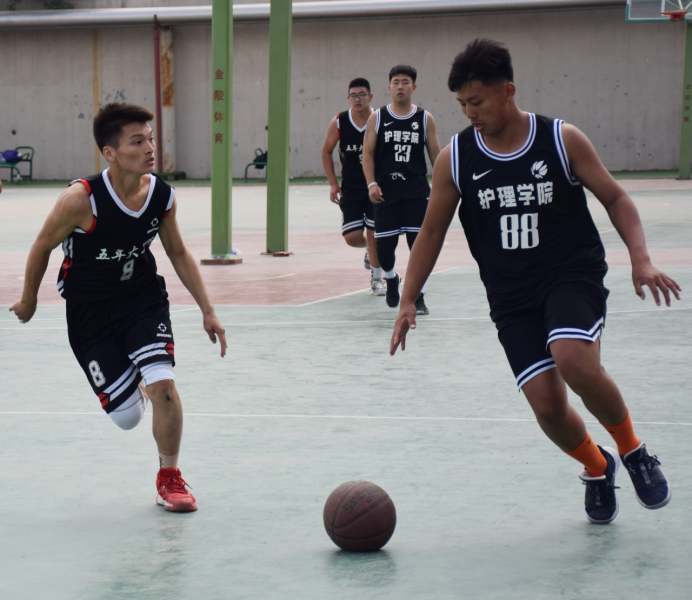 比赛开始,护理学院抢先挑球,一个进攻,上篮成功率先得到两分,为之后的比赛抢下了一个良好的开端。在比赛中双方队员传球、运球、争夺、防守,各显其能,赛况激烈。