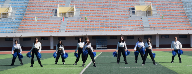 上半场的精彩比赛很快就接近尾声了,现场志愿者及时为球员们送水,提供服务。同时,护理学院啦啦队带着热情的舞蹈上场了,青春洋溢的舞姿展现现代学子的风姿。