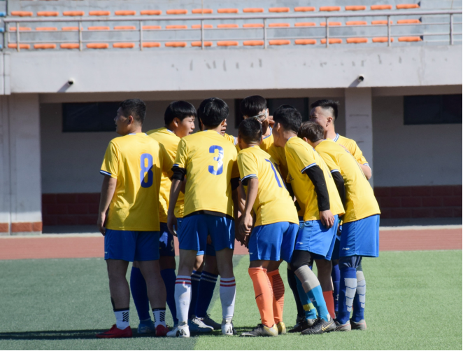 “加油!”,球场上一声齐呼为比赛的到来增添了几分紧张色彩。两队队员全部准备完毕,对胜利势在必得。