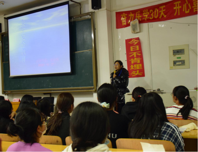 会议伊始,梁老师借社会热点给同学们讲了开这次会议的必要性,并说明了女生的特殊性。女大学生也是高校安全事故中的主要受害者,是易受伤害的群体,对于外界的伤害的抵抗力相对较弱,因此女生更要提高安全意识,做好自我保护措施。