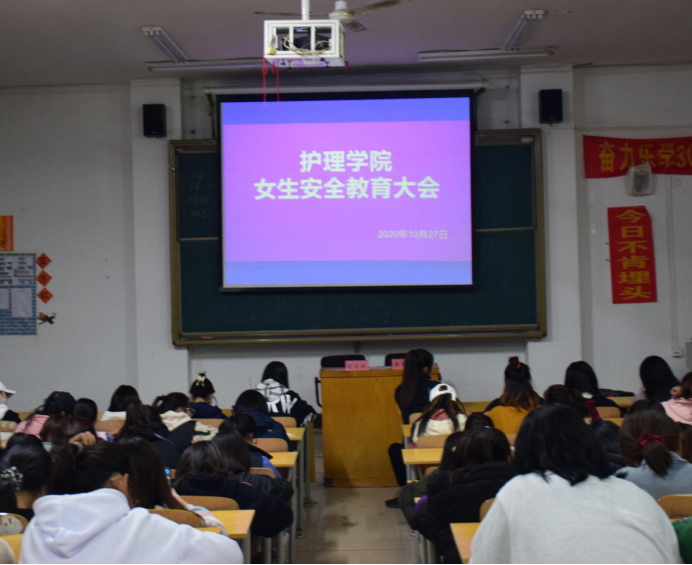 近日,女大学生失联的新闻引起社会的广泛关注,成为了一个热点问题,我院为提高女大学生安全意识,加强安全防范能力,山东现代学院护理学院于10月27日在阶梯教室102召开了“护理学院女生安全教育大会”。