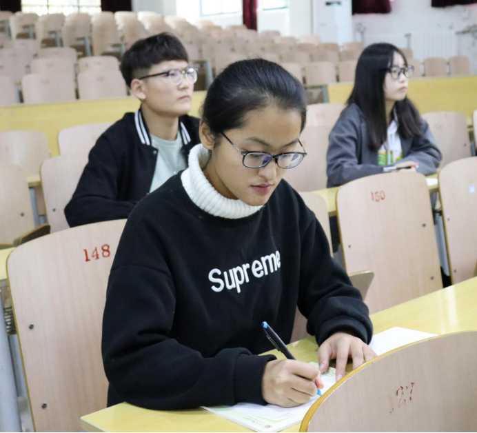 “书山有路勤为径,学海无涯苦作舟。”本次知识竞赛由选择题、判断题、填空题及简答题四部分组成,从公寓安全、食品安全、交通安全及防火防盗等多方面对同学们进行安全知识的考察。在考试过程中,每一位参赛选手都聚精会神,认真答题,严格遵守考试纪律。偌大的考场,听见的只有选手们奋笔疾书的写字声。