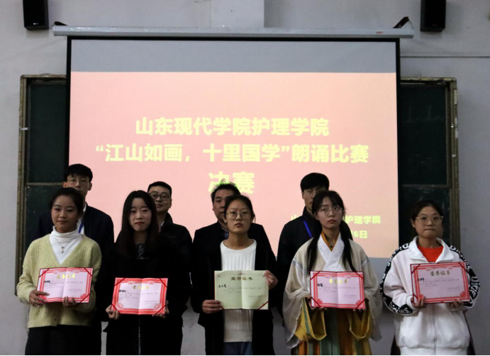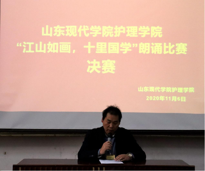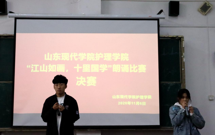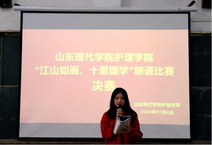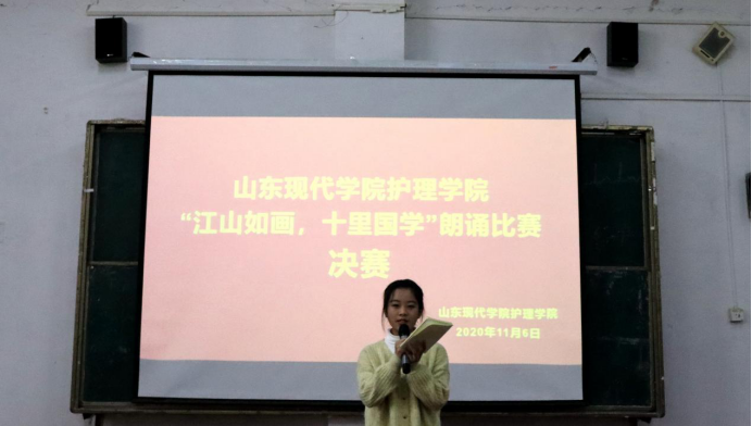中华文化,源远流长,国学经典,经久不衰。为丰富学生课余生活,激发学生阅读兴趣,增强学生对传统文化的认识,山东现代学院护理学院特于2020年11月6日在阶梯教室108举行“江山如画,十里国学”朗诵比赛。