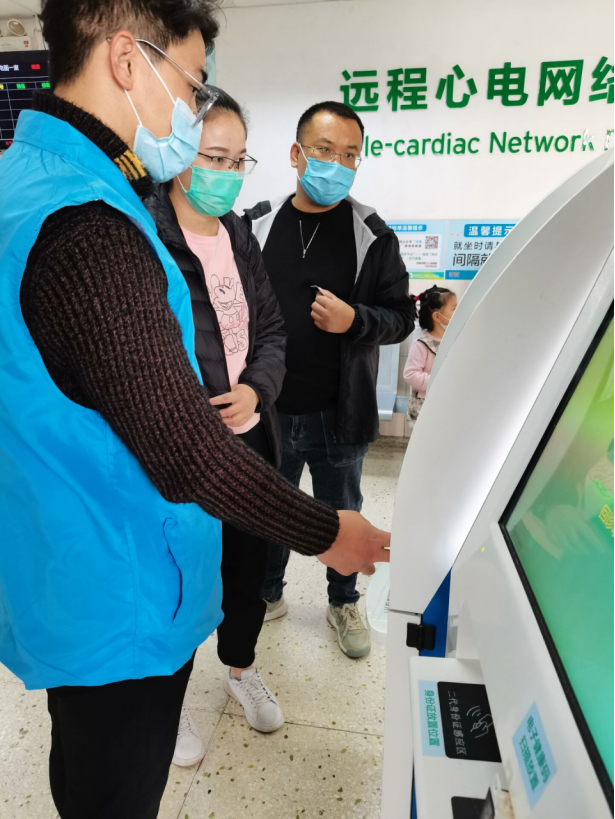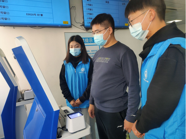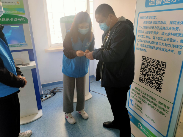 医院里永远都是忙碌的,在这里有着天使与死神的交锋,在这里所有人都被一样对待。人流高峰期,病患与家属们焦急地穿行于医院各处,志愿者用细心耐心极大地缓解他们的焦躁。患者来就医时,同学们轻声细语地告诉他们就诊流程以防他们忙乱不安;协助患者缴费时,同学们耐心地帮助他们在自助机办理缴费;有患者找不到具体科室,同学们为其指路或将其送到目的地……同学们面带春风般的笑容,他们同自己的努力传播生活正能量,用自己的行动主动承担起大学生的责任。