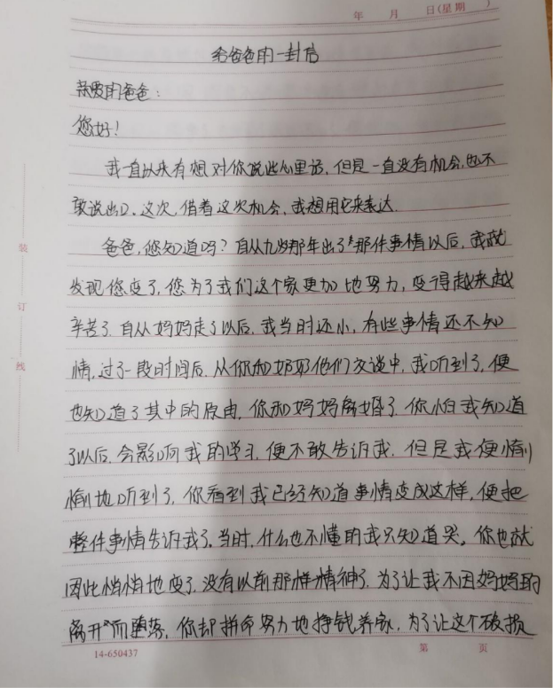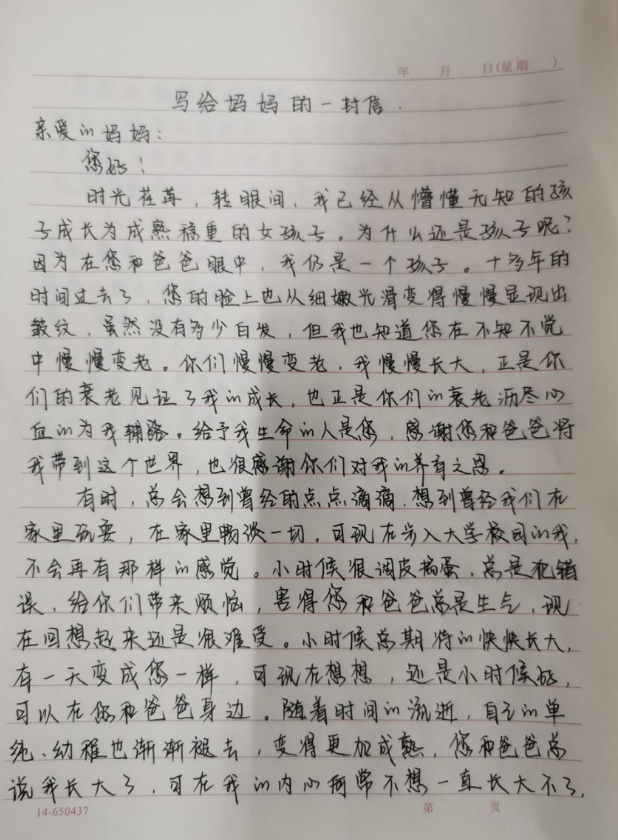 5天的活动时间很短,同学们想对父母和老师说的话也不只这几张纸。但纸短情长,同学们对父母与老师的感恩长存,岁月如水不会把它带走,只会把它冲洗的更新更亮。