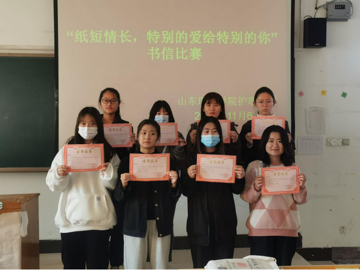 为帮助同学们孝顺父母、尊敬师长、学会感恩,促进良好社会风气的形成,弘扬中华民族传统美德。山东现代学院护理学院在2020年11月2日至6日于知敬楼举办了“纸短情长,特殊的爱给最特别的你们”的书信比赛。