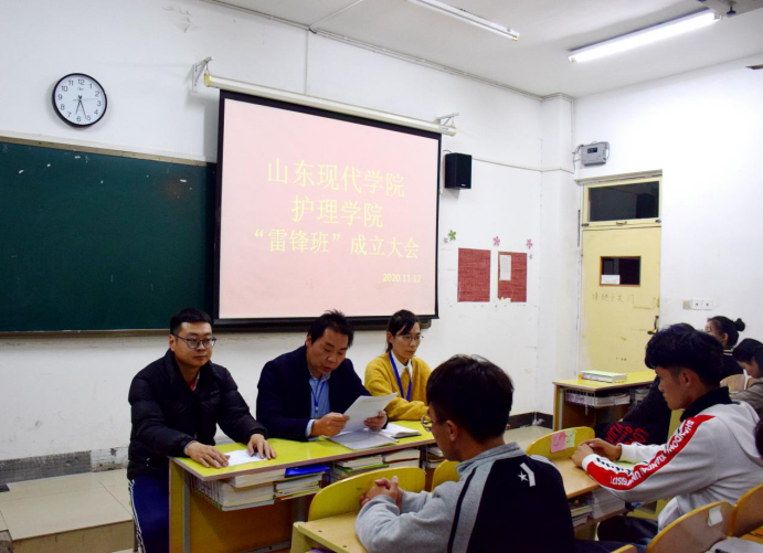 为贯彻习近平总书记重要讲话精神,落实学院工作安排,弘扬雷锋精神,在校园内形成良好的文化氛围,2020年11月12日,山东现代学院护理学院于知敬楼开展“雷锋班成立大会”。护理学院办公室主任兼学管就业秘书杨磊,学管就业秘书毕一鸣,辅导员黄晓宇和雷锋班学生参加本次会议。