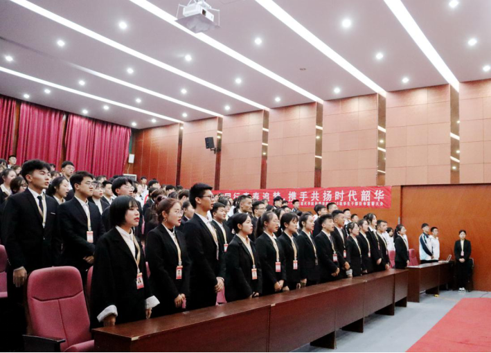 学生会副主席田中杰同学带领全体学生会成员进行宣誓,明确作为学生干部的责任与要求。铿锵有力的宣誓声代表着同学们甘于奉献、服从大局、以身作则、力争上游的决心与为学院发展贡献青春力量的坚定信念。