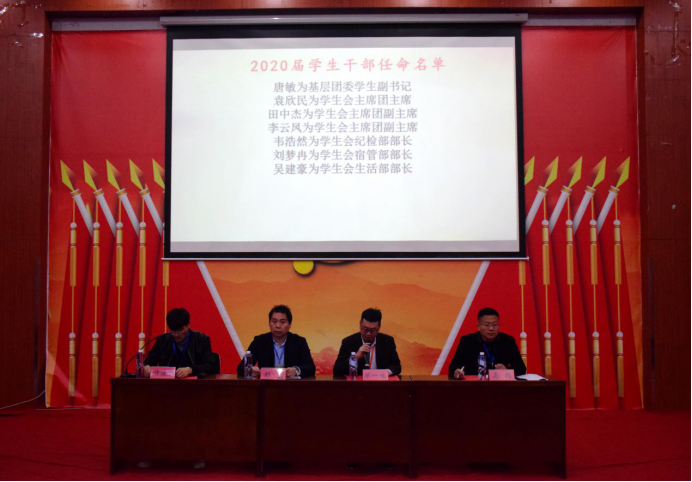 由毕一鸣老师宣读2020届学生会干部任命名单和优秀导航员获奖名单。并由各位领导为2020届学生会干部颁发聘书,为优秀导航员颁奖。