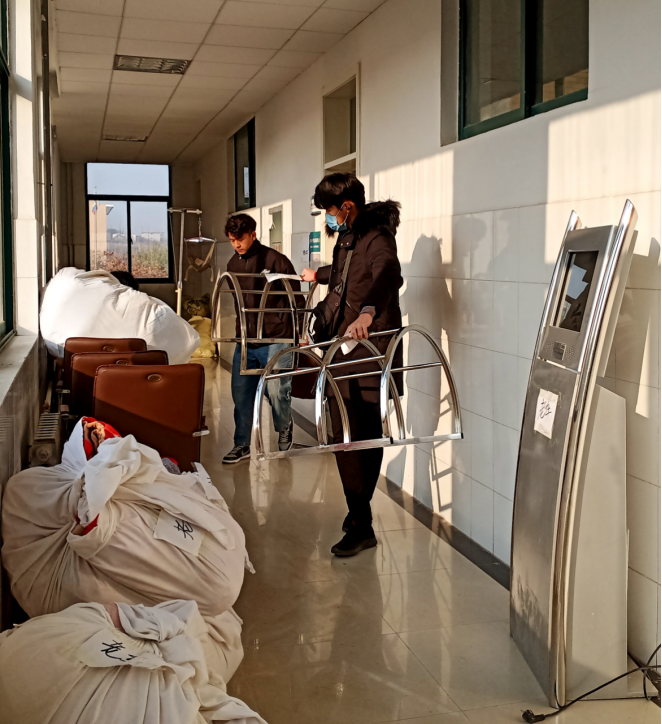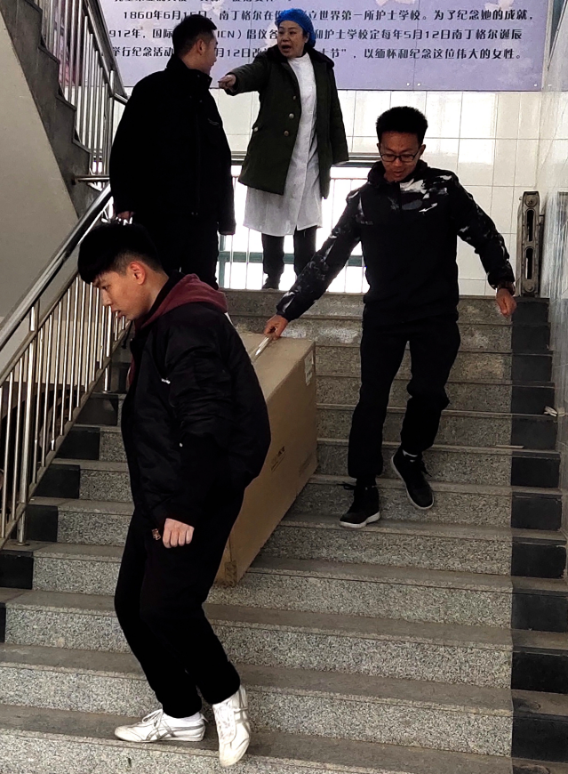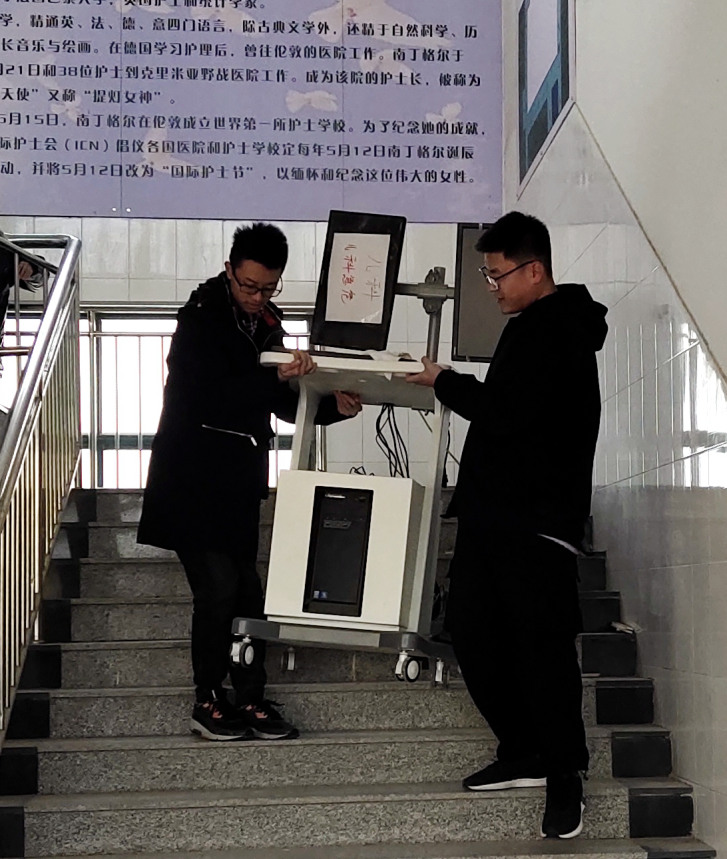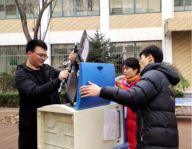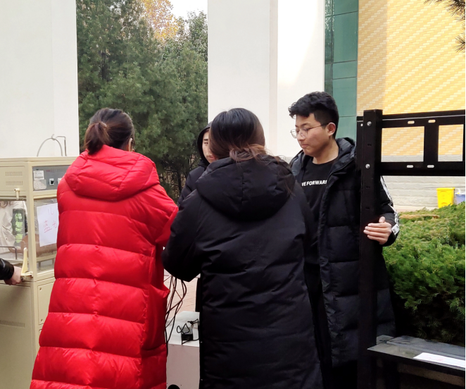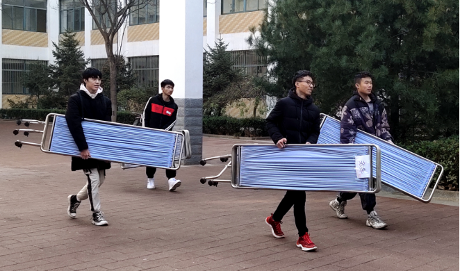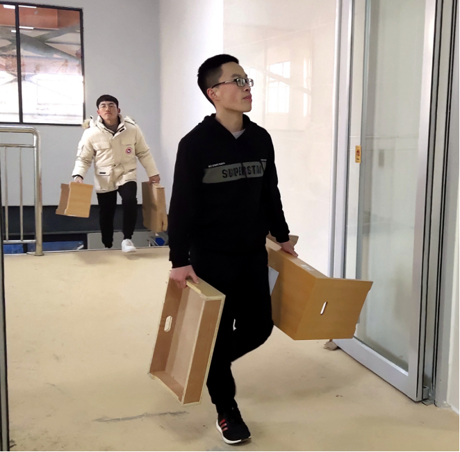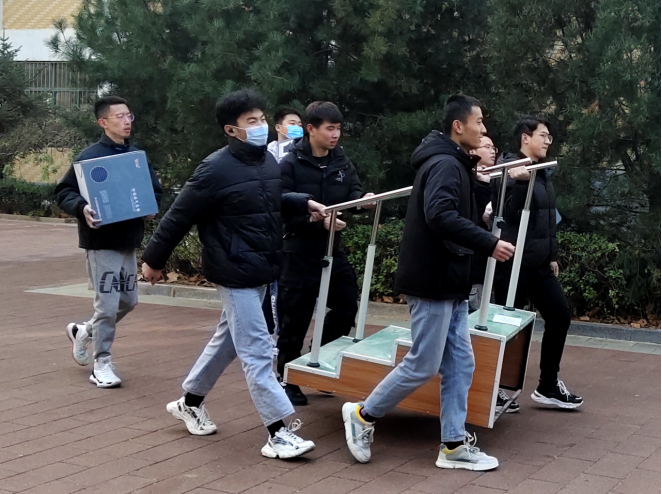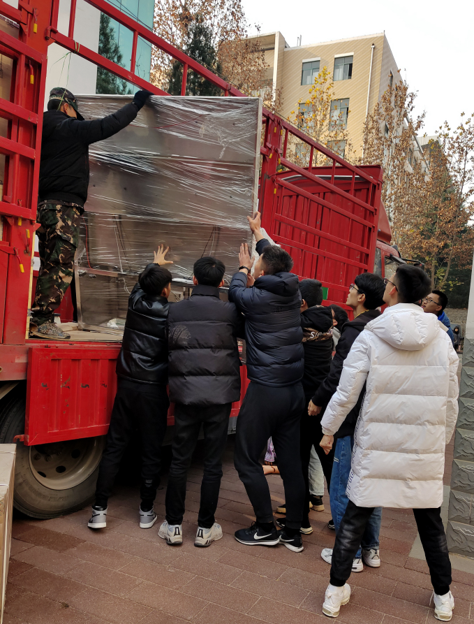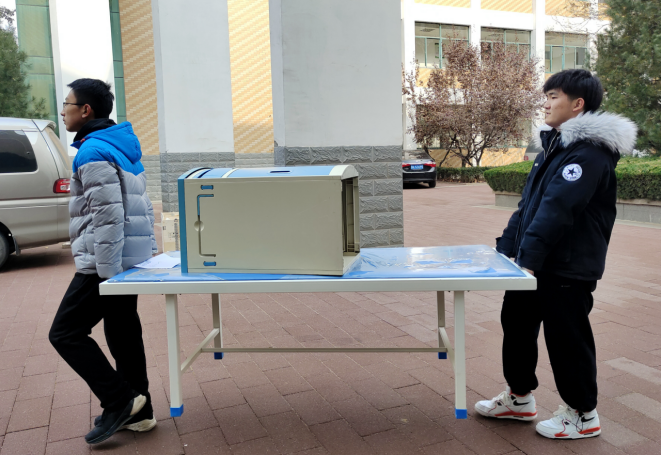 同学们不停的忙碌着,将器材一批一批的入库。没有工作的时候大家就在指定地点安静的等待,器材送来之后同学们都积极的上前帮助工作人员把器材运到实验室。