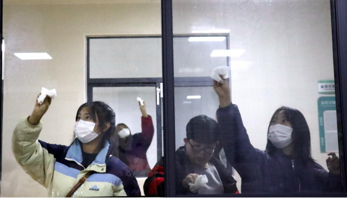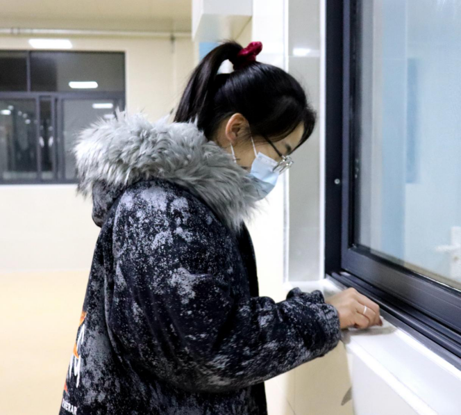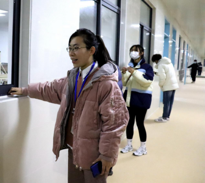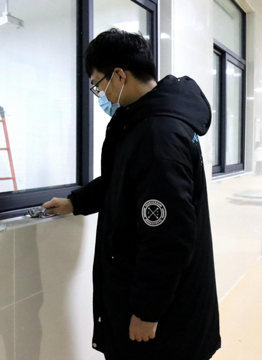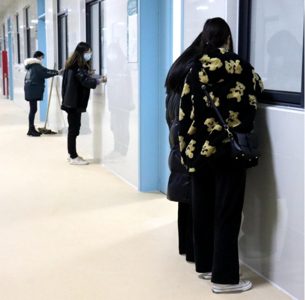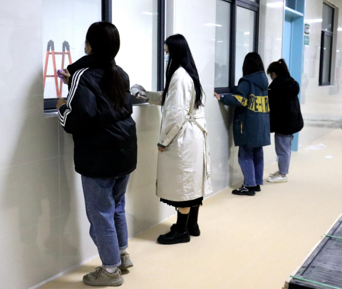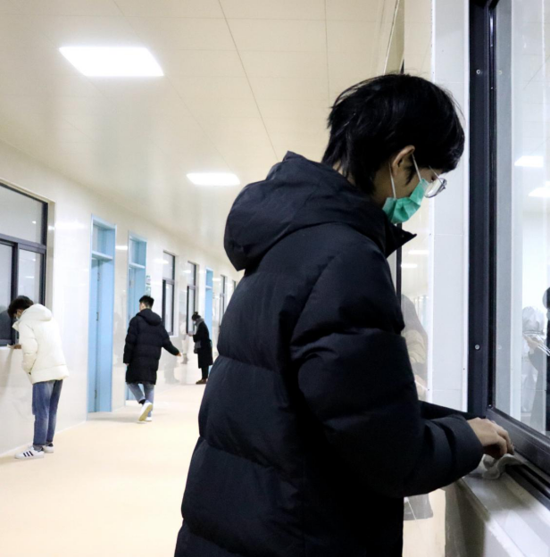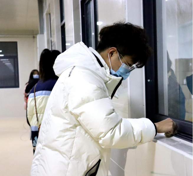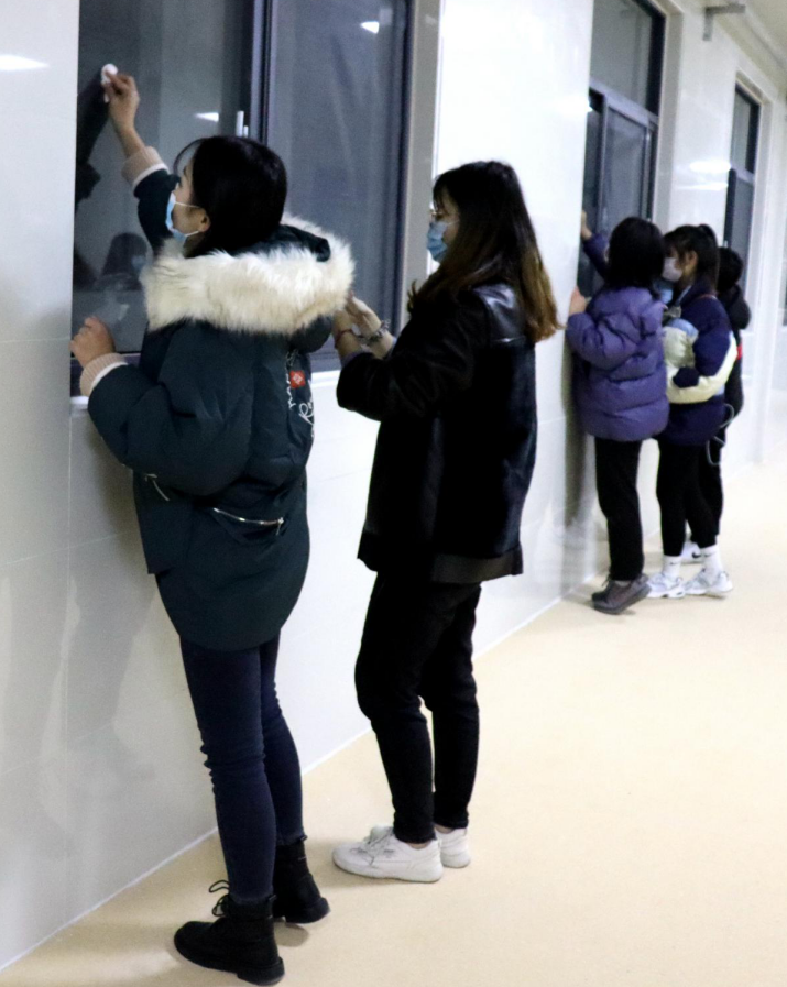 一个教室的同学打扫完毕会去帮助另外一个教室的同学,他们在开心愉快的环境中进行着。最后看着一面面玻璃被擦干净,同学们松了一口气,嘴角露出了笑意。