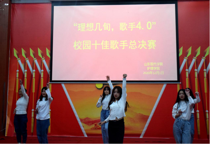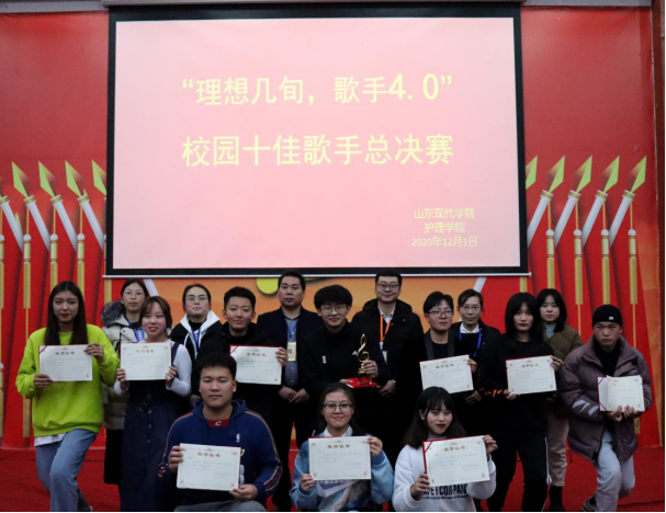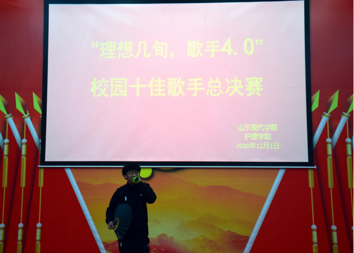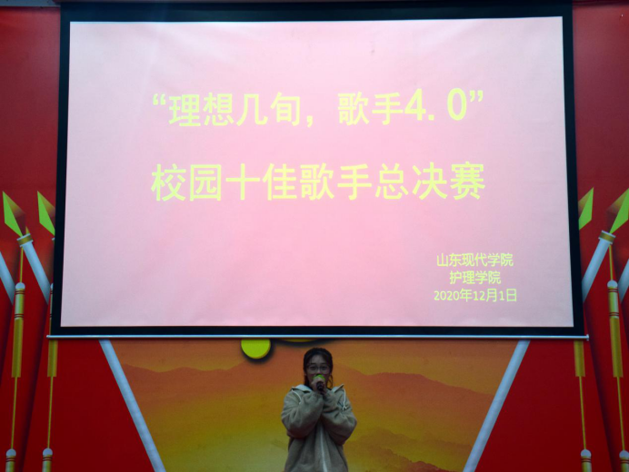“招东西南北人才,绘现代护理特色。”为提高同学们综合素质,丰富同学们课余生活,加强校园精神文明建设,唱响祖国最强音,营造活泼向上的校园氛围。山东现代学院护理学院于2020年12月1日于科研楼101举办“理想几旬,歌手4.0”校园十佳歌手大赛。