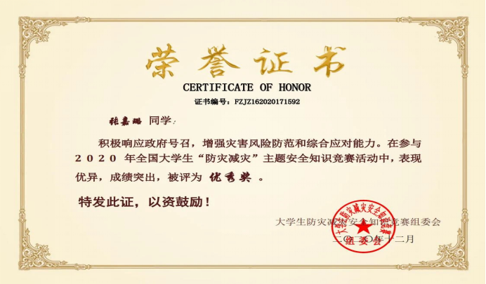 3、参加两次国家级大学生知识竞赛,并获得优秀奖;