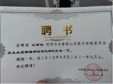 6、在2020年12月参与举办山东现代学院第三届“放飞梦想·羽你同行”羽毛球联赛;