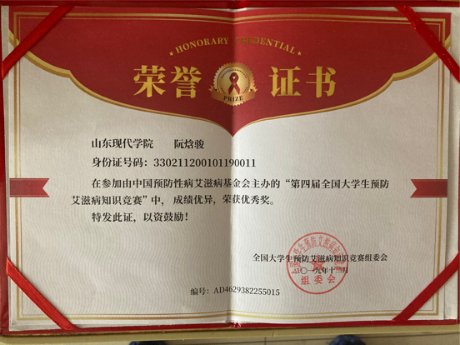 2、参加过第四届全国大学生预防艾滋病知识竞赛,并获得优秀奖;