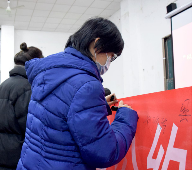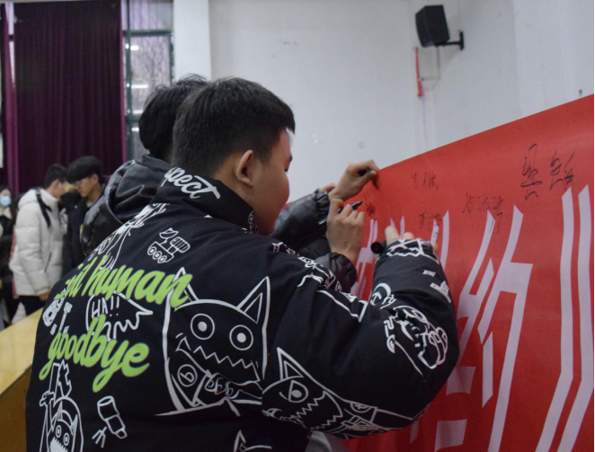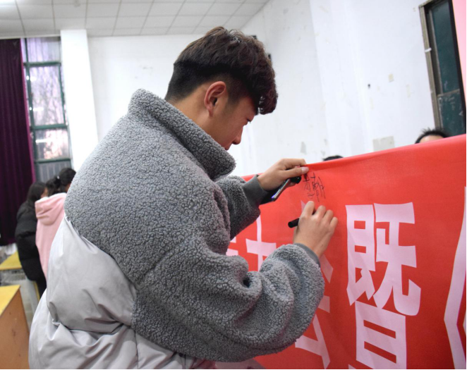 在工作人员的带领下,同学们有序在诚信横幅上签下自己的名字,并表达了自己诚信考试的决心。