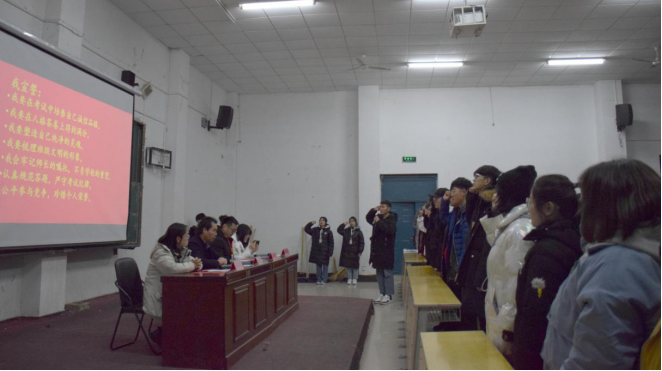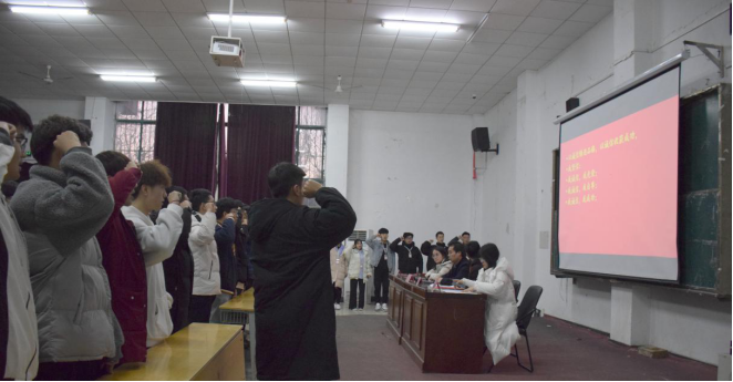 随后,由学生代表张兴带领同学们进行宣誓。为人诚实,遵守考试规则,是同学们对自己许下的诺言。相信同学们会本着“诚信”的原则对待将要来临的期末考试,最终交出一份满意的答卷。