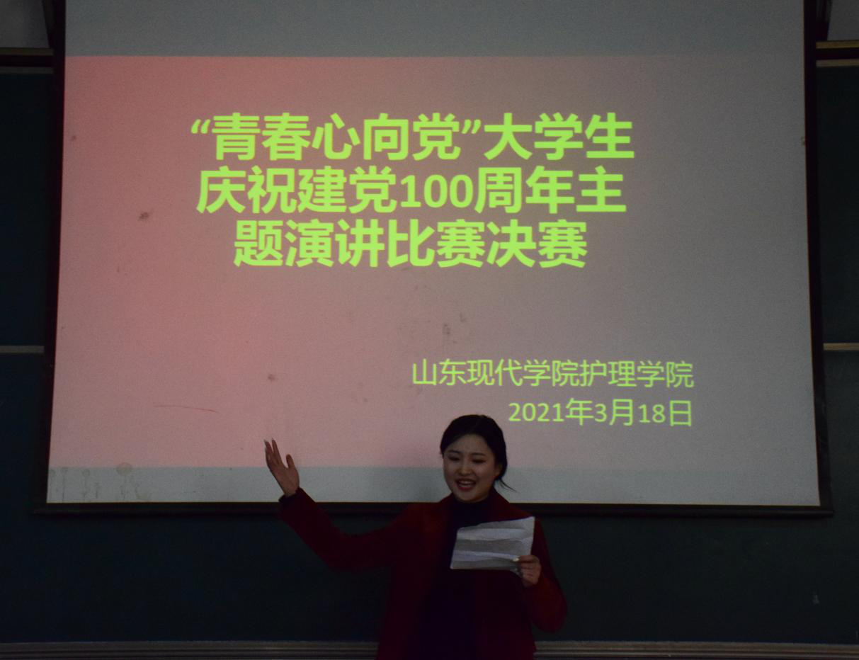 为增强当代大学生的社会责任感,共建和谐文明爱党的校园理念。山东现代学院护理学院于2021年3月18日在合堂103举行了以“青春心向党”庆祝建党100周年为主题的演讲比赛决赛。护理学院学管就业秘书毕一鸣,辅导员徐秋月、朱凤娇以及护理学院部分同学参加。