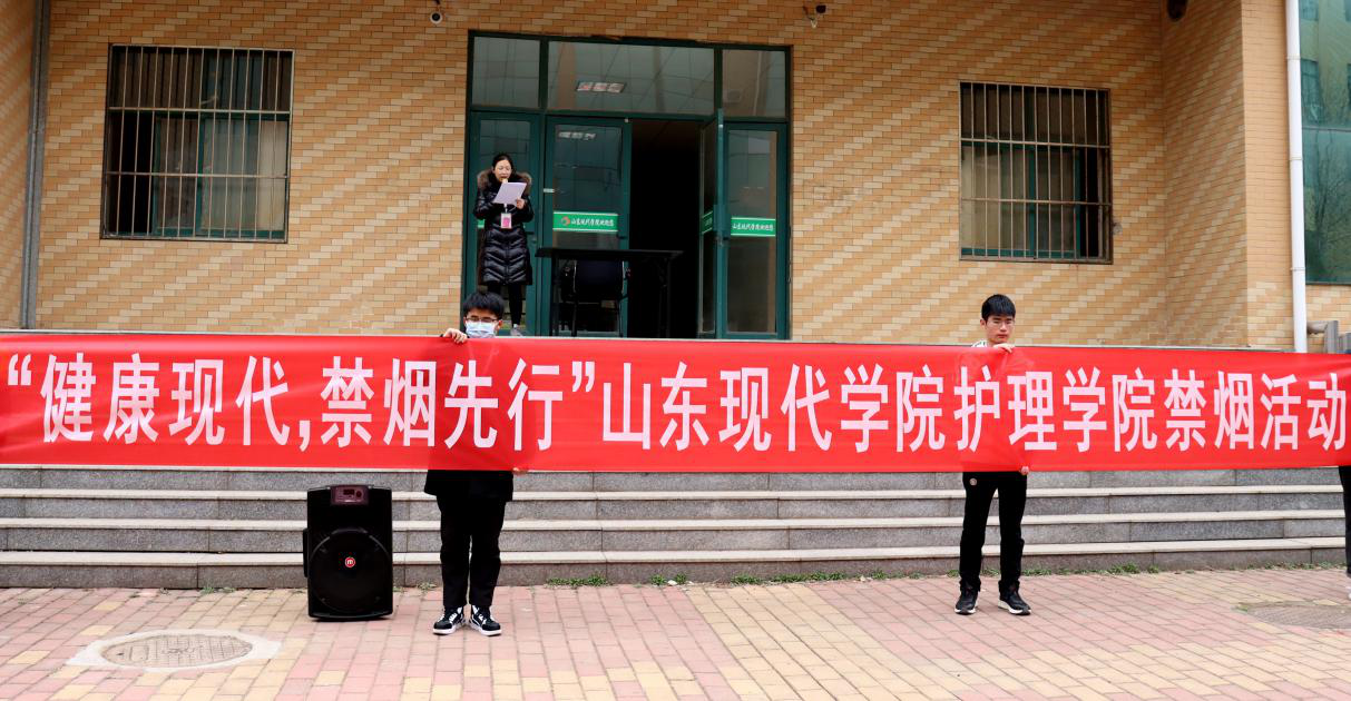 为树立和展现我校师生良好的精神面貌,促进同学们养成良好文明的生活习惯,创造文明、洁净、优美的校园环境。山东现代学院护理学院于2021年3月19日在知敬楼小花园开展了以“健康现代,禁烟先行”为主题的禁烟宣传活动,护理学院辅导员梁新艳及学生代表参加。
