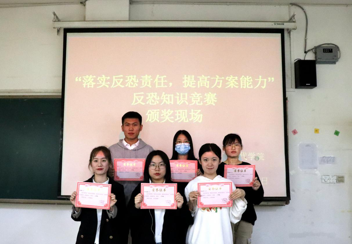 在全民国家安全教育日到来之际,为在校园内形成“讲和谐,促发展,反恐怖,反暴力”的氛围,普及学生们的反恐宣传教育知识,山东现代学院护理学院于2021年4月15日在阶梯教室108特此举办了“落实反恐责任,提高防范意识”反恐知识竞赛活动。